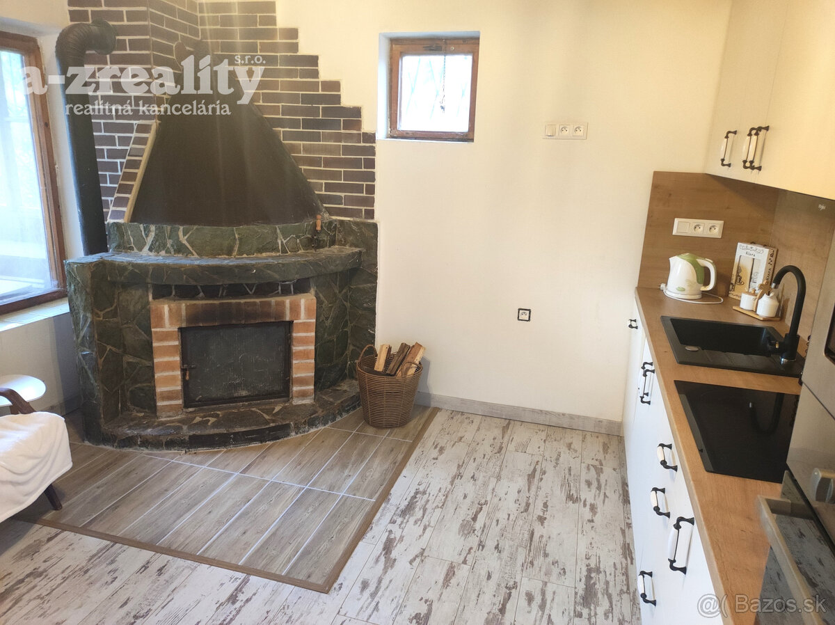 - vyvýšené prízemie prešlo najväčšou rekonštrukciou - podlahy, steny, kompletne zariadená kuchynka, s novou kuchynskou linkou so zabudovanými elektrospotrebičmi, v rohu zostal funkčný murovaný krb na tuhé palivo. Terasa je zastrešená zasklenná s posedením