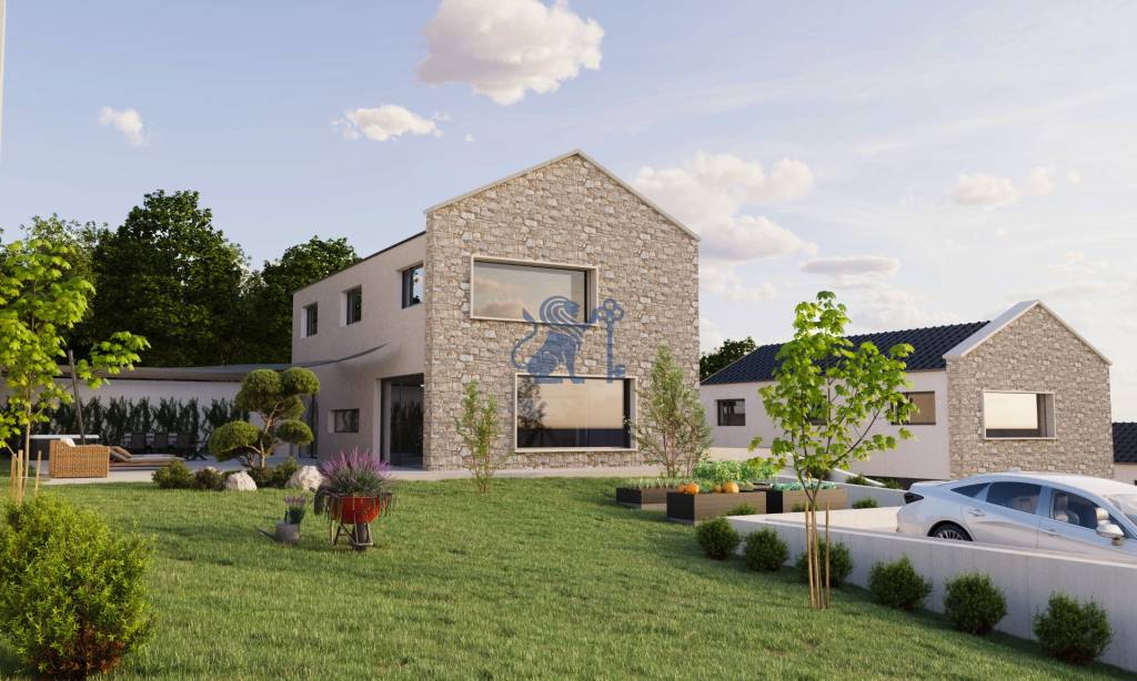 V dome budú zabudované kvalitné hliníkové okná s izolačným trojsklom vo farbe antracit, vonkajšie elektricky ovládané exteriérové žalúzie, hliníkové vstupné dvere so sklom, betónové potery, sadrové vnútorné omietky, maľovky, sadrokartonové stropy, príprava pre kuchynskú linku, kompletná vodoinštalácia a elektroinštalácia. Dom je napojený na vlastnú studňu a žumpu. Predáva sa vo vysokom technologickom prevedení v štádiu HOLODOM. Je postavený z tehly hr. 300mm, zateplený s kvalitným zatepľovacím systémom (polystyrén hrúbky 200mm) s kombináciou fasády a tehlového alebo dreveného obkladu. Strecha je väzníkový krov, s krytinou betónová škridla vo farbe antracit. Kúrenie zabezpečuje tepelné čerpadlo systémom vzduch – voda. V celom dome je podlahové vykurovanie. Objekt bude mať aj predprípravu pre krb, predprípravu pre klimatizáciu, predprípravu pre fotovoltiku a predprípravu pre alarm a bezpečnostné kamery. Budú dokončené hrubé terénne úpravy. Dom bude oplotený z troch strán, ale bez vstupnej brány a bráničky. Ku vstupu do domu bude viesť vydláždený chodník zo zámkovej dlažby. Dažďova voda je odvádzaná do vsakov. Bude dodaná aj prípojka a verejné LED osvetlenie komunikácie. Zámková dlažba pre terasy a parkovacie miesta nie sú predmetom dodania.