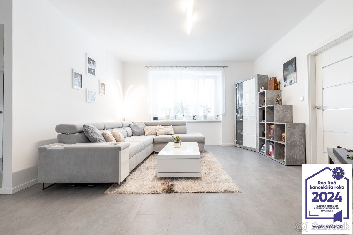 Byt samotný má výmeru 105 m² a disponuje balkónom (3x1,2 m), ako aj pivnicou o rozlohe cca 12 m². Orientovaný je na juhovýchod a západ. V byte bola v roku 2024 dokončená kompletná rekonštrukcia, ktorá zahŕňa nové vinylové a plávajúce podlahy, sadrokartónové stropy, modernú elektroinštaláciu, rozvody kúrenia a vody, ako aj kuchynskú linku vyrobenú na mieru so vstavanými spotrebičmi (umývačka riadu, chladnička, mraznička, digestor, el. rúra, mikrovlnka, sporák).