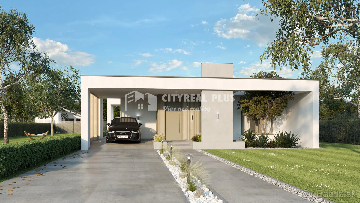 Zabezpečenie bezpečnostnými dverami. Plochá strecha. Rovinatý pozemok.
