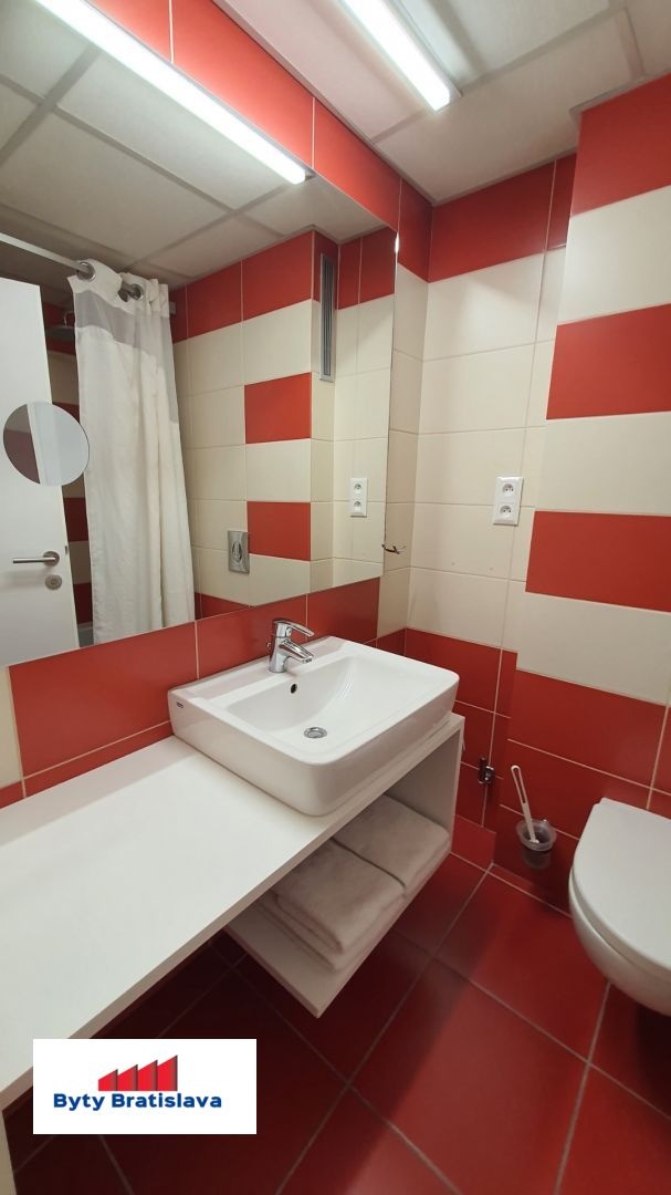 Byt ma cca 30m2, je na 4/8 poschodie, kompletná rekonštrukcia, kompletne zariadený: kuchynská linka, mikrovlnka, chladnička, mraznička, pračka, zabudovane úložne priestory, televízor, internet., vhodný pre par alebo jednu osobu.