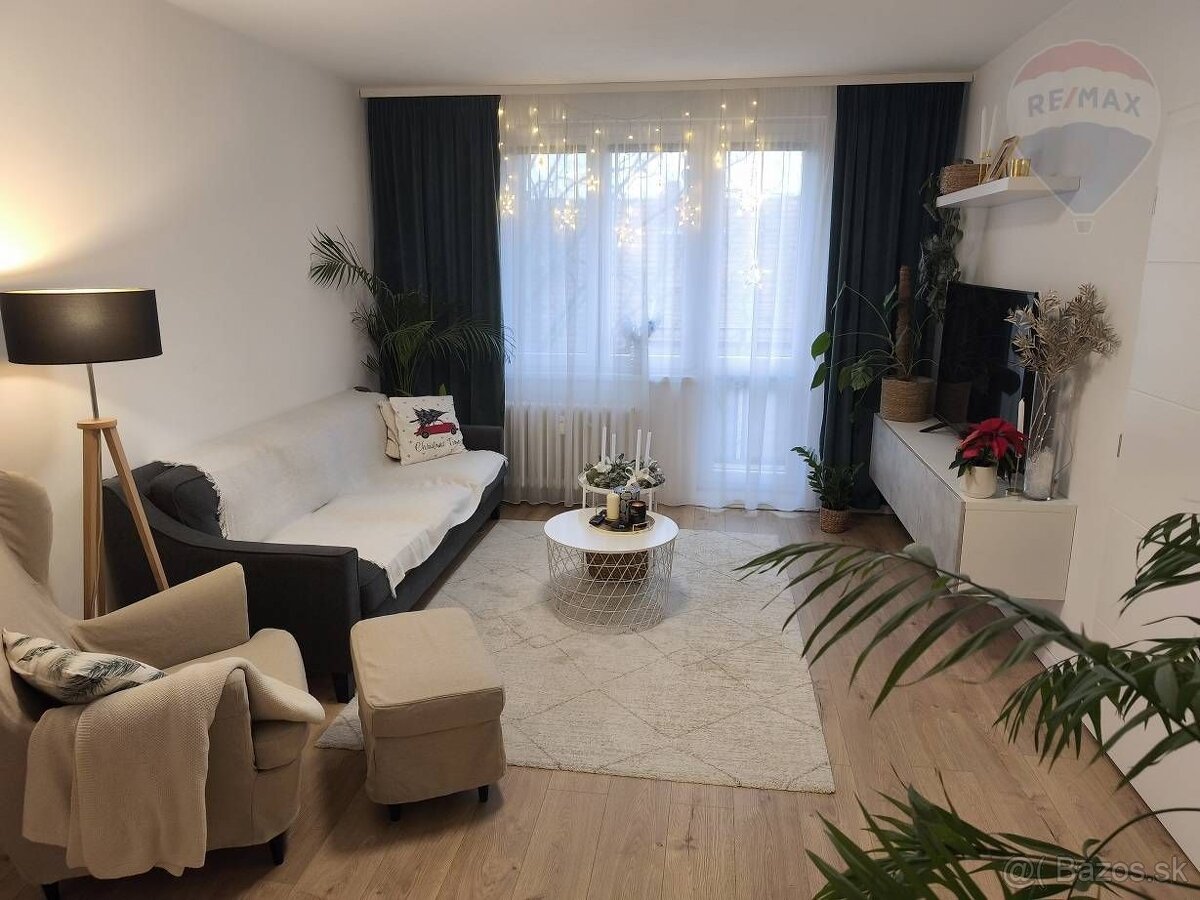Byt prešiel pred troma rokmi kompletnou a vkusnou rekonštrukciou: vstupné bezpečnostné dvere, nové podlahy, nové interiérové dvere a zárubne, murované jadro kúpelne so sprchovým kútom so žľabom a závesným záchodom, nové vodovodné a odpadové potrubia, nová elektroinštalácia v byte, kuchynská linka na mieru so vstavanými spotrebičmi (umývačka riadu, chladnička s mrazničkou, elektrická rúra, indukčná varná doska, dizajnový odsávač pár), plastové okná, stierky, 2 x vstavaná skriňa (na chodbe a v spálni).