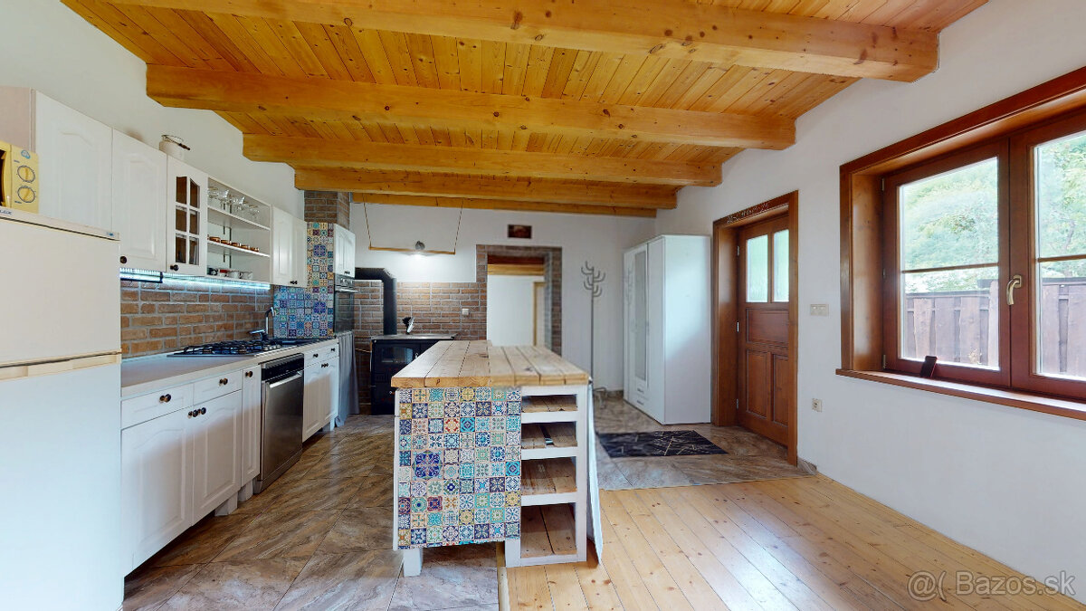 Na prízemí sa nachádza zrekonštruovaná kuchyňa so vstavanými spotrebičmi, prepojená s obývačkou, v ktorej je aj krb. Ďalej tu nájdete špajzu, sam ...