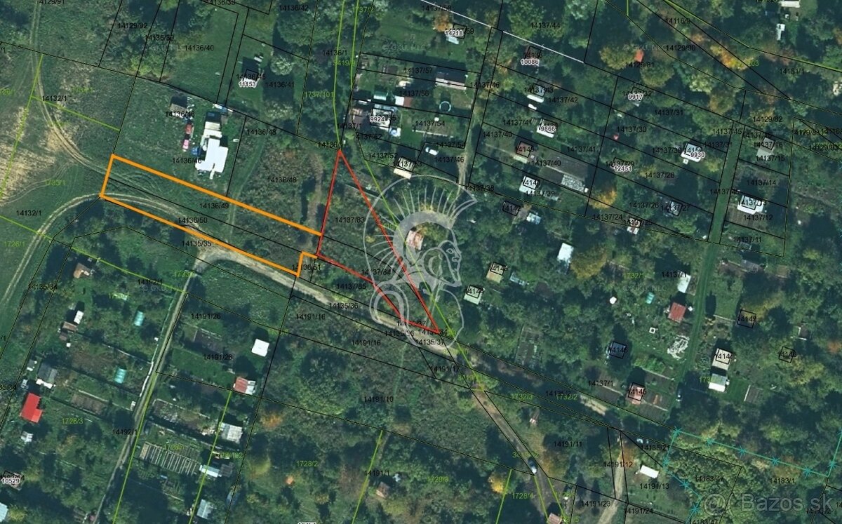 446 m² + 545 m² = spolu 991 m² = 34.730 € (k pozemku sa zriaďuje vecné bremeno práva prechodu)
