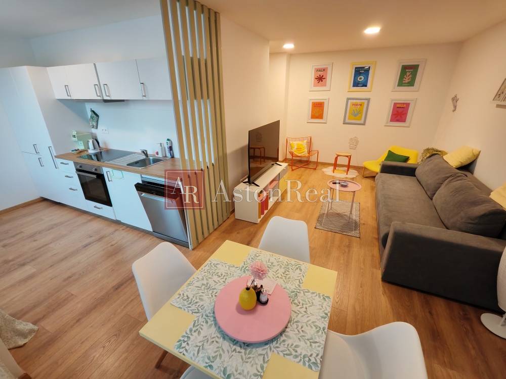 Byt je priestranný, dispozične dobre riešený otvorenou dispozíciou obývacej izby prepojenej s kuchyňou, samostatnou spálňou a kúpeľňou spojenou s WC. Predáva sa kompletne zariadený kvalitným nábytkom na mieru, vrátane spotrebičov. Kuchynská linka je kompletne vybavená - vstavaná chladnička s mrazničkou, umývačka riadu, elektrická teplovzdušná rúra, indukčná varná doska, riady. Vo vstupnej chodbe a v spálni sú vstavané skrine s množstvom úložného priestoru. Do bytu vedú bezpečnostné vstupné dvere. V byte je podlahové teplovodné vykurovanie s vlastným termostatom a reguláciou teploty.
