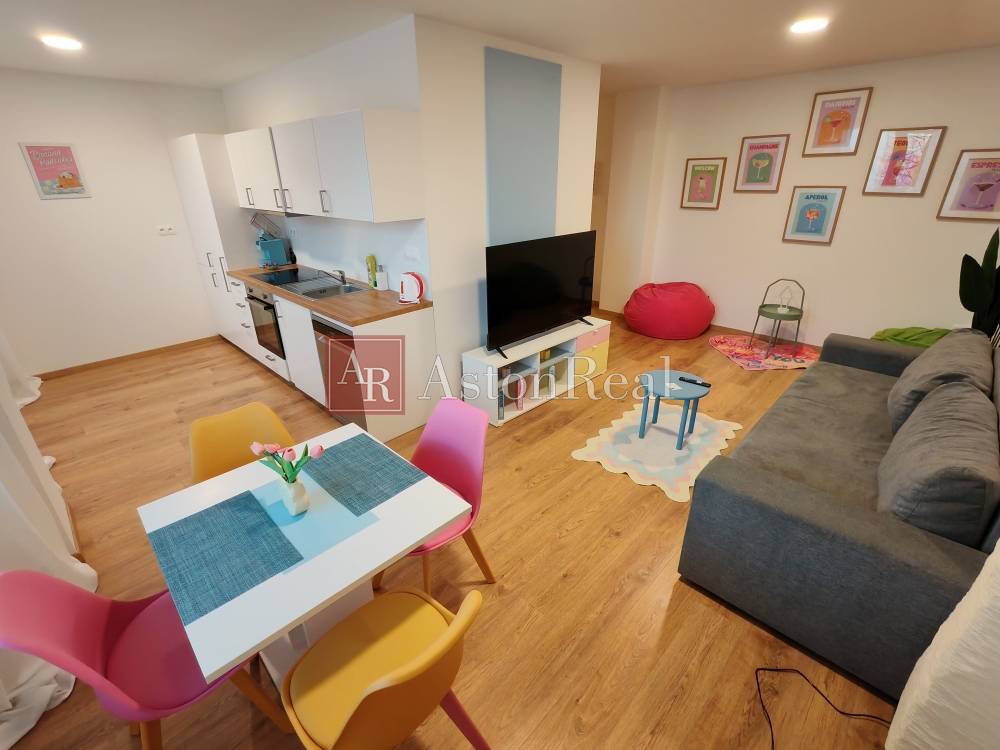 Byt je priestranný, dispozične dobre riešený otvorenou dispozíciou obývacej izby prepojenej s kuchyňou, samostatnou spálňou a kúpeľňou spojenou s WC. Predáva sa kompletne zariadený kvalitným nábytkom na mieru, vrátane spotrebičov. Kuchynská linka je kompletne vybavená - vstavaná chladnička s mrazničkou, umývačka riadu, elektrická teplovzdušná rúra, indukčná varná doska, riady. Vo vstupnej chodbe a v spálni sú vstavané skrine s množstvom úložného priestoru. Do bytu vedú bezpečnostné vstupné dvere. V byte je podlahové teplovodné vykurovanie s vlastným termostatom a reguláciou teploty.