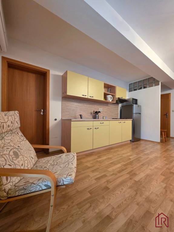 - dispozične je apartmán rozdelený na priestrannú obývačku s kuchyňou (29,5m2) s výstupom na balkón a samostatnú spálňu (11,2m2)