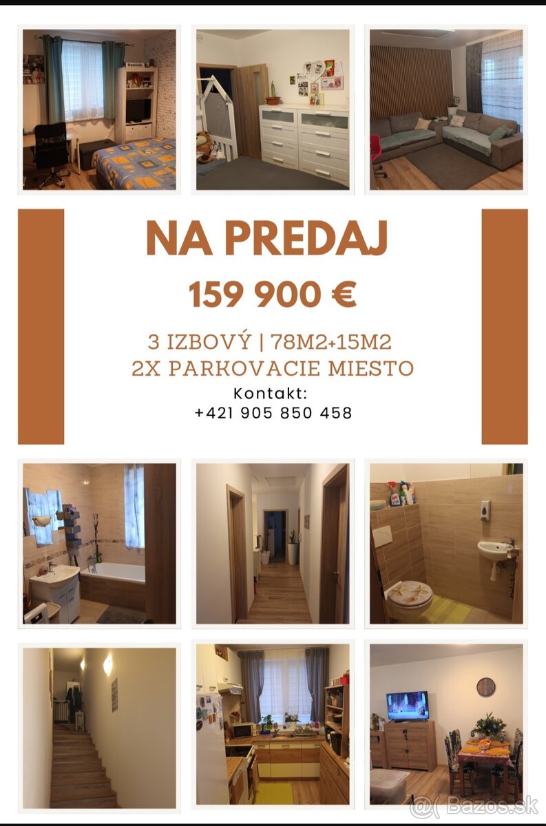 3izbovy byt na predaj 78metrov štvorcových plusz 15metrov štvorcových terasa.