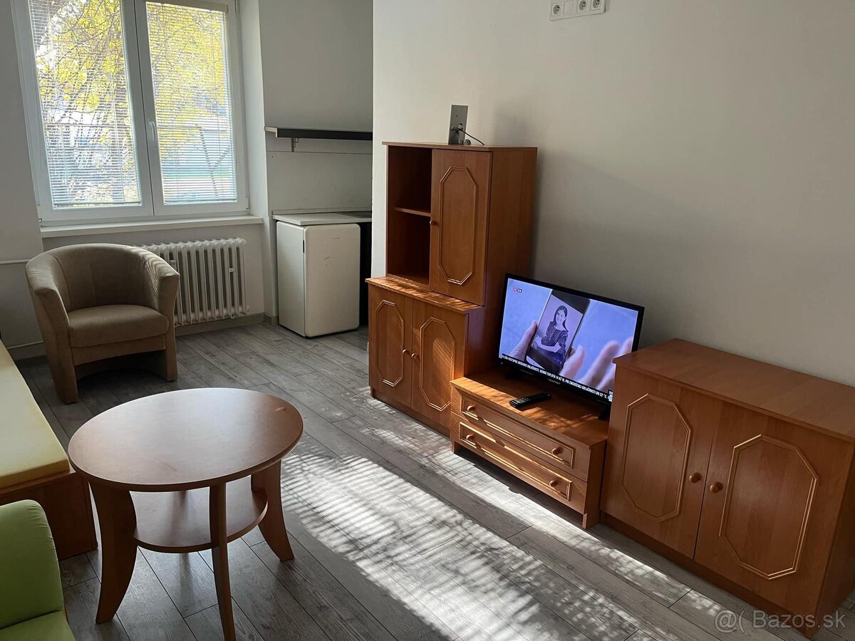 Garsonka sa nachádza v blízkom centre mesta. Čiastočne zariadená ( posteľ, obývacia stena, tv, práčka, chladnička, sedacia súprava)