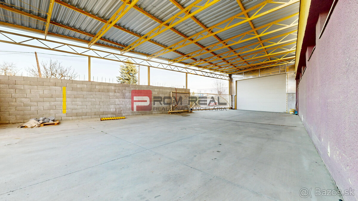 - kryté skladové priestory so železobetónovou konštrukciou, kuchyňa, šatňa, toalety a sprchový kút - spolu 970 m2