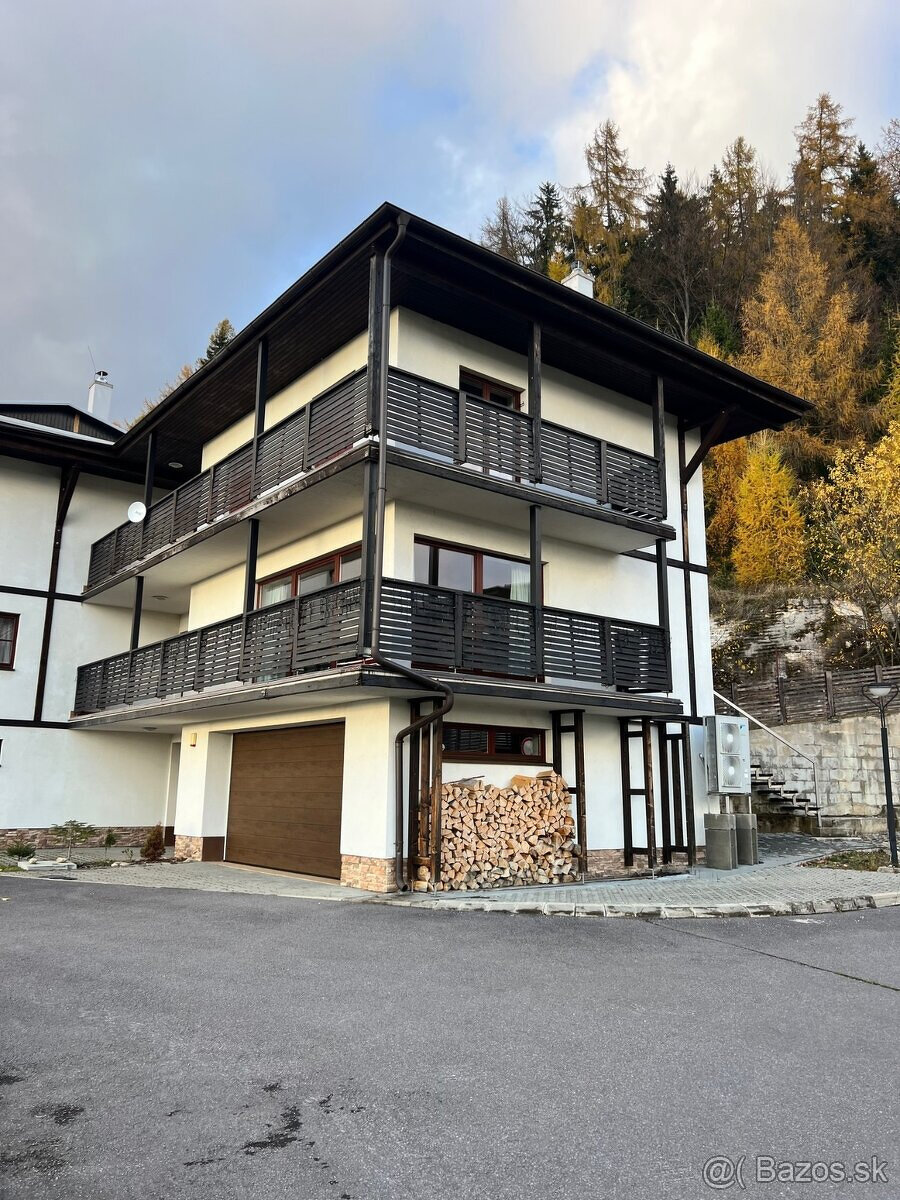 Na 2. poschodí sa nachádzajú tri izby a tri kúpeľne so sprchovým kútom, vaňou a toaletou. Z terasy sa Vám ponúka výhľad na scenériu okolitých hôr. Na prízemí sa nachádza komfortné zádverie, chodba s WC a k dispozícii sú dve garáže. Jedna veľká pre dve aj vačšie vozidlá a druhá menšia samostatná garáž vhodná pre štvorkolku, snežný skúter alebo bicykle. Dom sa prenajíma kompletne zariadený.