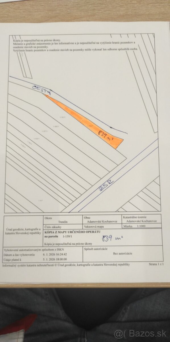 Ponukam na predaj/prenajom pozemok v K.U. Adam.Koch. č.parcely 1-159/1 o rozlohe 839m2