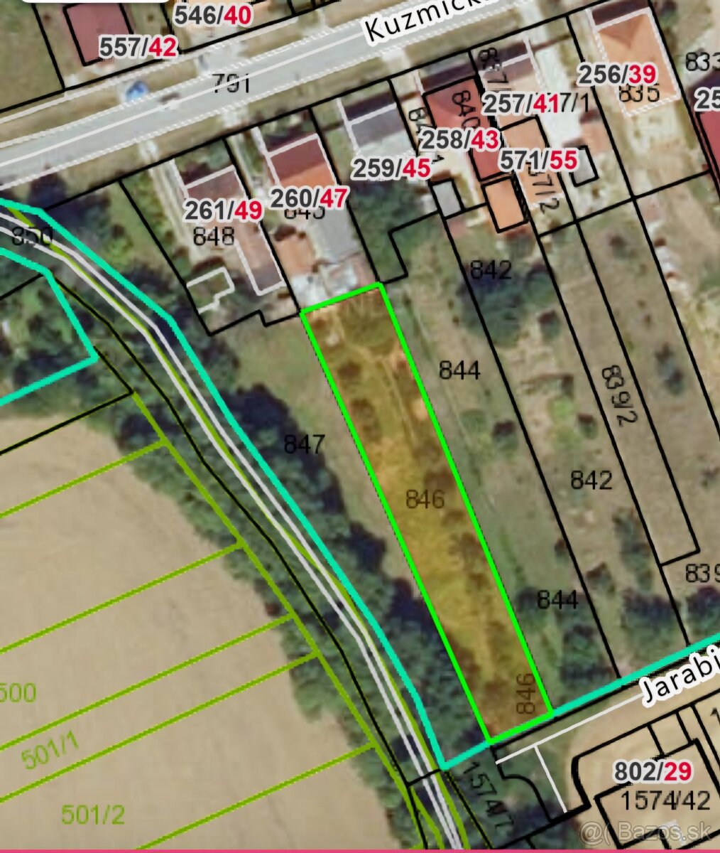Ponúkam na predaj stavebný pozemok v obci Jacovce. Pozemok sa nachádza na konci novovybudovanej ulice Jarabina.