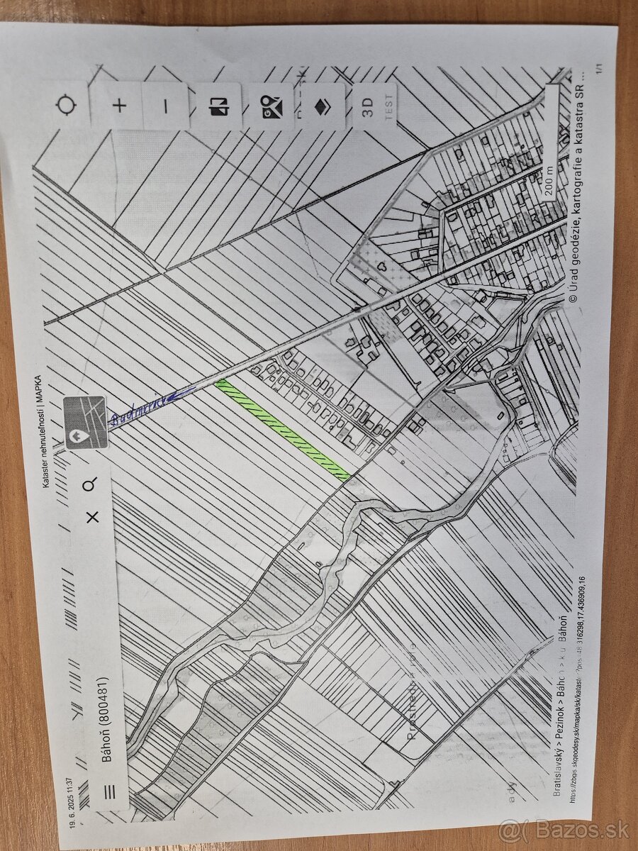 Ponúkam na predaj lukratívny pozemok v obci Báhoň. Pozemok je situovaný na konci obce smerom na Budmerice, po pravej strane smerom k potoku, momentálne vedený ako orná pôda, inžinierske siete sú cca 60 m od pozemku. Pozemok je prístupný z oboch strán, jedna strana vedie na hlavú cestu smer Budmerice, druhá nespevnená súbežne s potokom. Šírka pozemku je 20 m a celková výmera je 5770 m2.