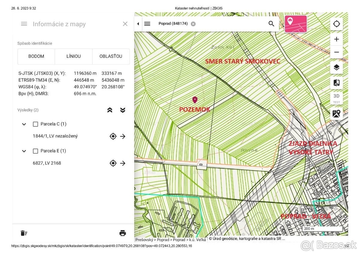 Ponúkame na predaj pozemok - ornú pôdu o celkovej výmere 3096 m2 v Poprade, v katastrálnom území Poprad - Veľká. Pozemok má len jedného vlastníka. Pozemok je vidieť z hlavnej cesty smer z Popradu do Starého Smokovca za výjazdom z Popradu na diaľnicu.