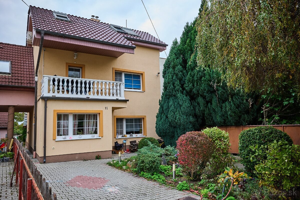 Ponúkam na predaj 7 izbový rodinný dom v starej časti Bernolákova na 13á pozemku . Výborná poloha v blízkosti centra obce. Dom je súčasťou dvojdomu avšak s dobre odhlučnenou izoláciou. Má 3 podlažia, 7 izieb, na každom podlaží je kúpeľňa . Dom bol postavený v roku 1977, v roku 2006 bolo dostavané podkrovie, bol kompletne zrekonštruovaný a zateplený. Kúrenie je plynové, na prízemí sa nachádza navyše krb, v podkroví je aj klímatizácia. K domu je pristavená zasklená terasa, na dvore je altánok. Na dvore sa nachádza samostatne stojaci záhradný domček o výmere 46m2 s letnou kuchynkou, šopou a pivnicou. Za ním je kôlňa na drevo a skleník. K domu prislúcha veľká záhrada s ovocnými stromami. Parkovanie vo dvore je na 2 autá + jedno na ulici.
