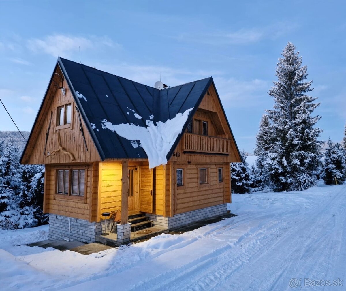 Kapacita 12 osôb, WIFI, Sauna, Stolný tenis, Veľká Spoločenská miestnosť, Krb, Kúpeľňa WC, Plnevybavená kuchyňa, na poschodí nachádzajú 4 spálne, v exteriéri je samozrejmosťou altánok, gril a kotlina. Cena zahŕňa energie a iné.