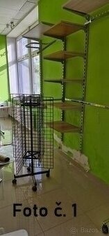 Predám výhodne obchod. zariadenie - vybavenie do predajne: nástenné regále, drôtené regále, štendre, figuríny, drôtené koše, predajné pulty, pokladničnú zásuvku a pod.- pozri foto
