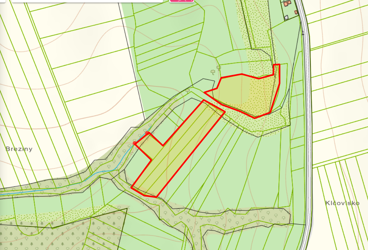 Medzi dvomi pozemkami je obecna parcela je tu moznost uzivat obe pozemky pripadne prepojenie..