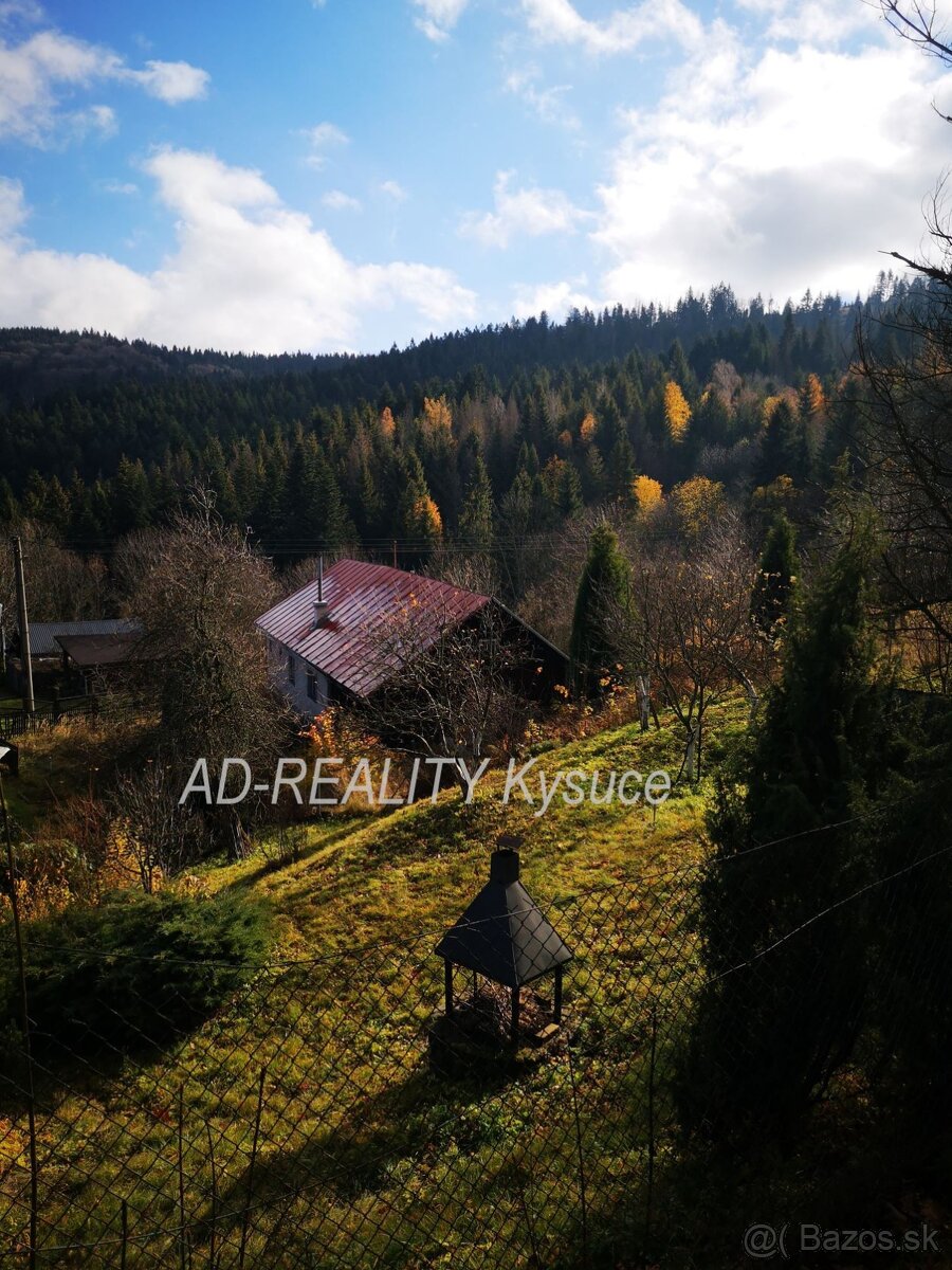 AD-REALITY Kysuce – ponúkame na predaj útulnú rekreačnú chalupu, postavenú na okraji malej kysuckej osady (katastrálne územie Čadca). Dom aj interiér sú v dobrom stave, po čiastočnej rekonštrukcii. Interiér pozostáva z kuchyne, dvoch izieb, kúpeľne s WC, vstupnej chodby v prízemí a dvoch spální v podkroví. Stavebnou súčasťou je hospodárska časť – bývalá stodola, kde je studňa, sklad dreva a náradia.. Dom je čiastočne podpivničený. Záhrada je upravovaná len kosením, rovinatá až mierne svahovitá, slnečná s orientáciou na JV, V záhrade je ďalšia kopaná studňa a malá terasa s ohniskom. Veľkosť pozemku 600 m2 , chalupa evidovaná ako rodinný dom.