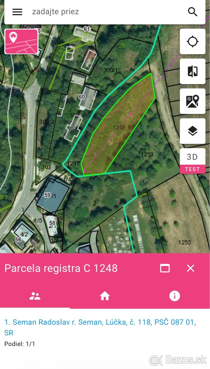 Parcela je dohľadateľna v katastri viď foto
