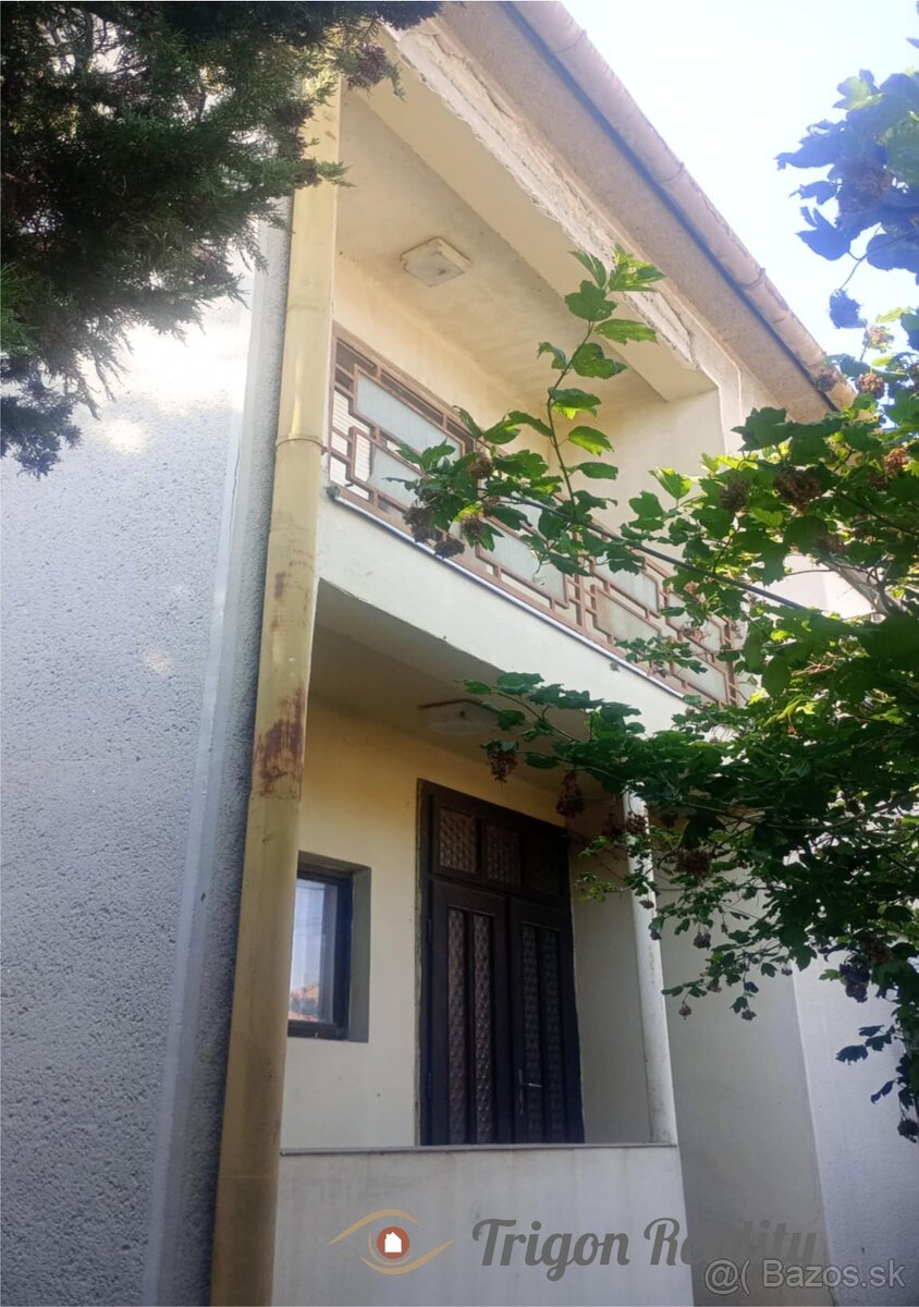 Ponúkame na predaj poschodový rodinný dom s úžitkovou plochou 108 m2 v meste Hurbanovo v tichej ulici medzi rodinnými domami so slušnými susedmi. Veľkosť oploteného pozemku je 749 m2, šírka pozemku je 17 m, dĺžka pozemku je 44 m. Rodinný dom bol postavený v roku 1970 je vhodný na okamžité bývanie. Dispozične pozostáva z nasledovných miestností: pivnica 40 m2 sa používa ako sklad a technická miestnosť, PRÍZEMIE: chodba, kuchyňa s východom do záhrady (možnsť vytvoriť terasu), komora-špajza, schodisko a veľká obývacia izba s dvomi vstupmi (z chodby a z kuchyne - prípadne sa dá rozdeliť na dve izby), POSCHODIE: schodisko, kúpeľňa s toaletou, spálňa a dve izby. Dom je napojený na všetky inžinierske siete: elektrina, plyn, miesty rozvod pitnej vody, studňa v záhrade, žumpa s možnosťou napojenia sa na miestnu kanalizáciu. Dom je vo veľmi dobrom technickom stave, strecha je izolovaná, interiér je obývateľný, s menšími úpravami v exteriéri je možná vytvoriť bývanie aj pre väčsiu rodinu, prípadne pre dve generácie. Na pozemku sú okrasné stromy, vinič a ovocné stromy.