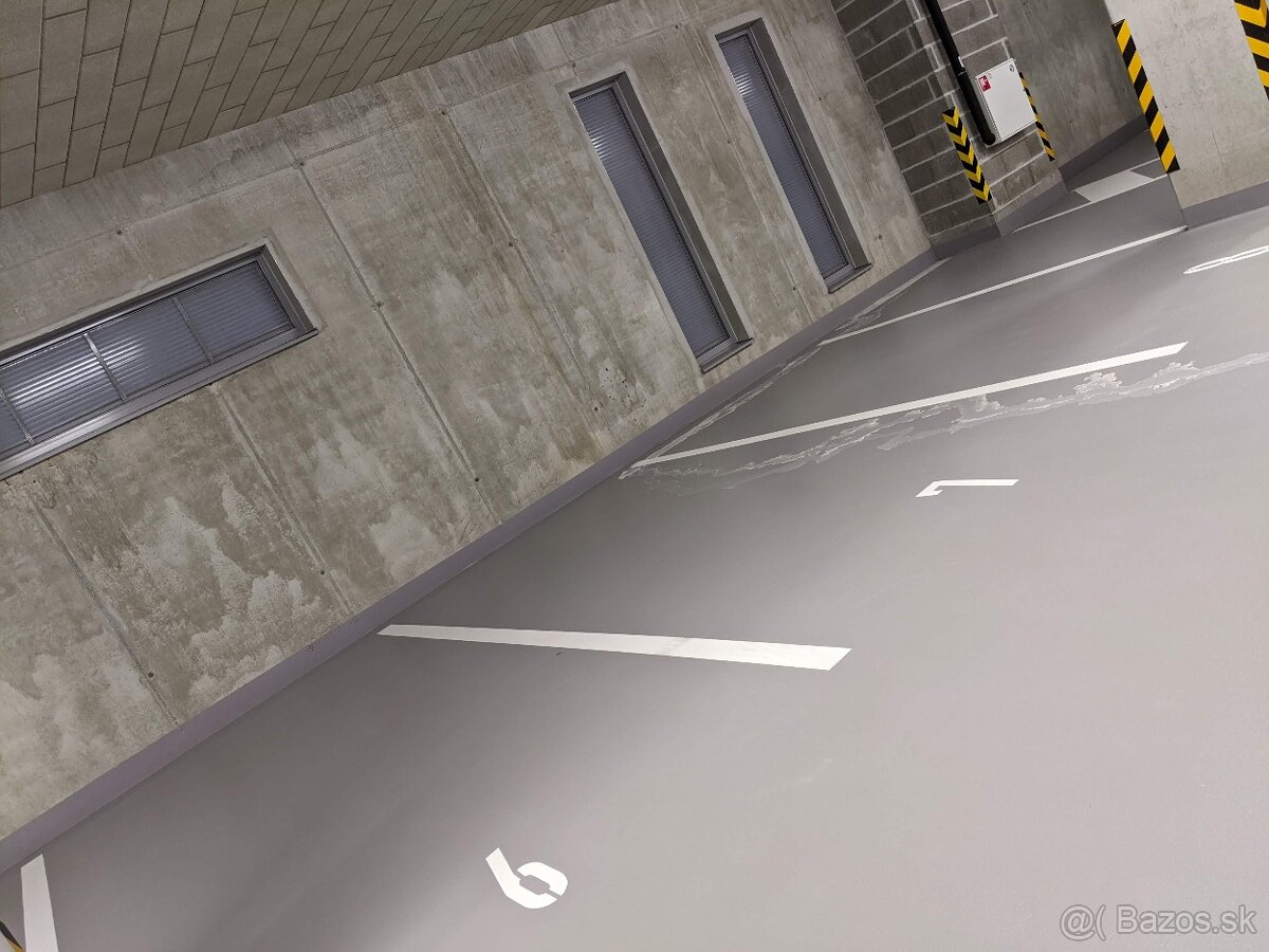 Garážové miesto má štandardnú šírku a dĺžku, komfortný vjazd a výjazd.