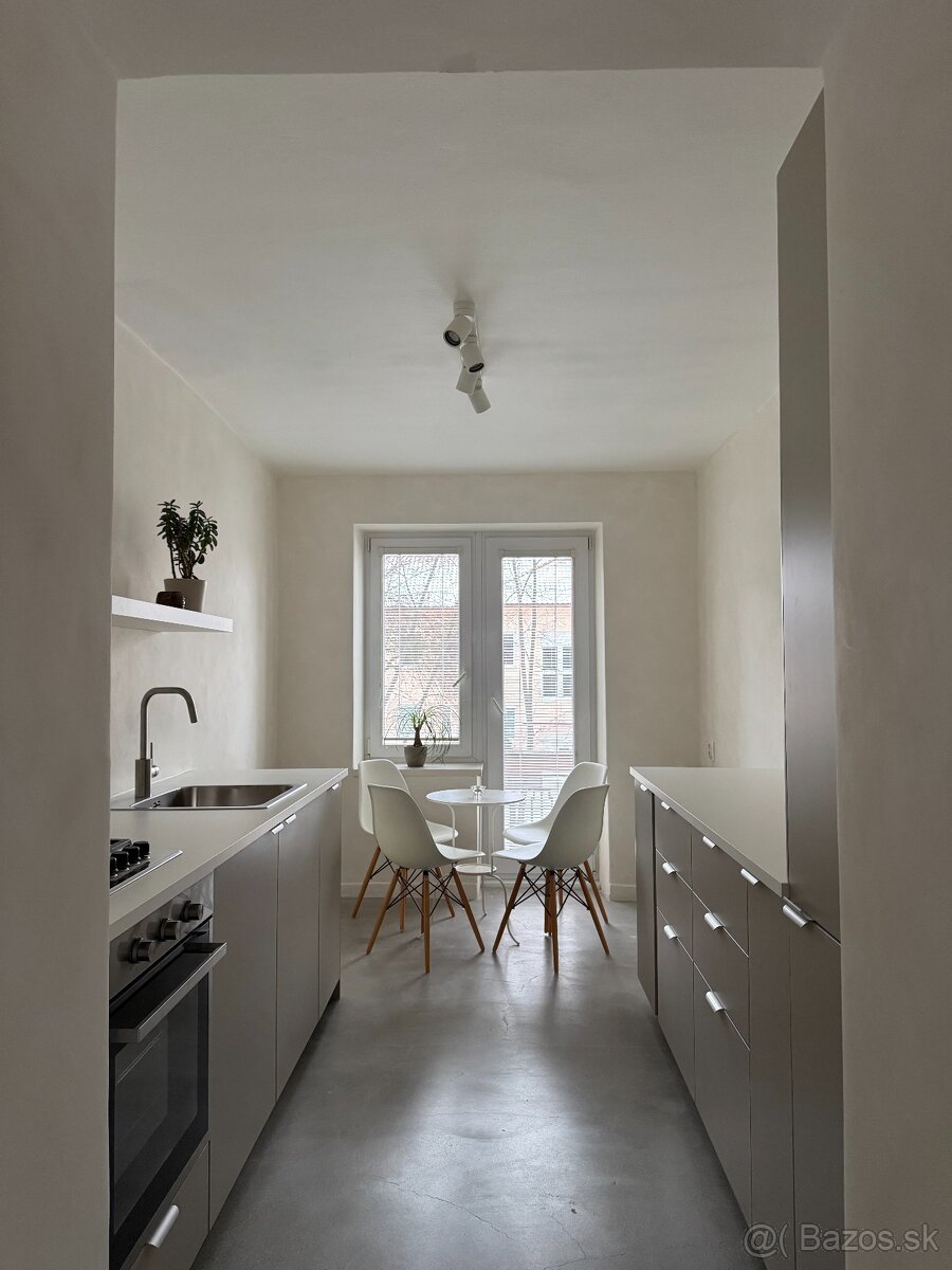 Byt je po rekonštrukcii a má plne zariadenú kuchyňu a s úplne novými spotrebičmi a kuchynskou linkou s veľkou pracovnou doskou. Kúpeľňa má krásne nové omietky, okno s denným svetlom, práčku, pracovnú dosku, veľa úložného priestoru a veľký sprchovací kút. Celý byt má nové podlahy a je čerstvo vymaľovaný.