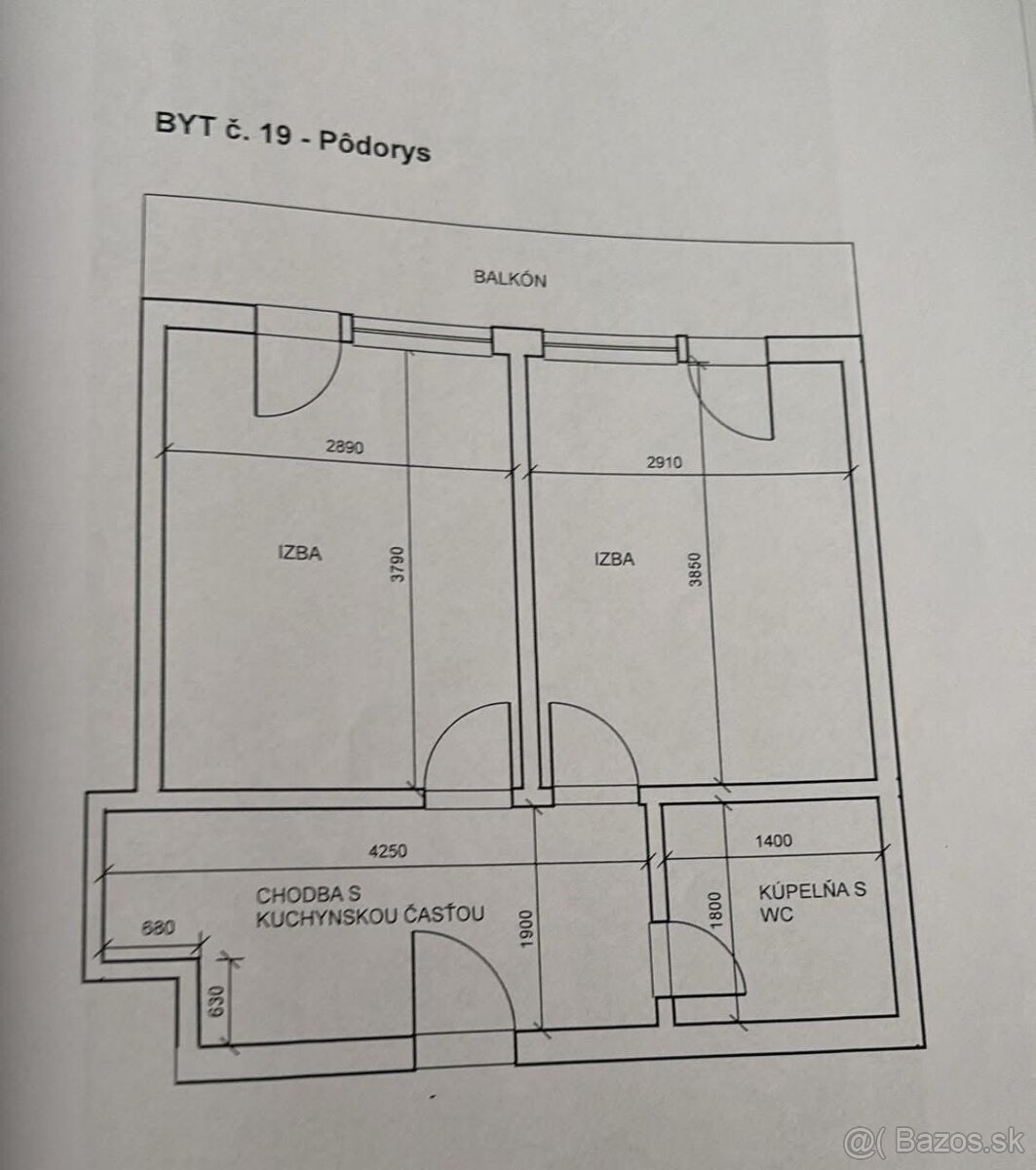 kuchyňa, izba s balkónom- vstup z kuchyne, samostatná izba - spálňa vstup z chodby, chodba, kúpeľňa so sprchovým kútom ...