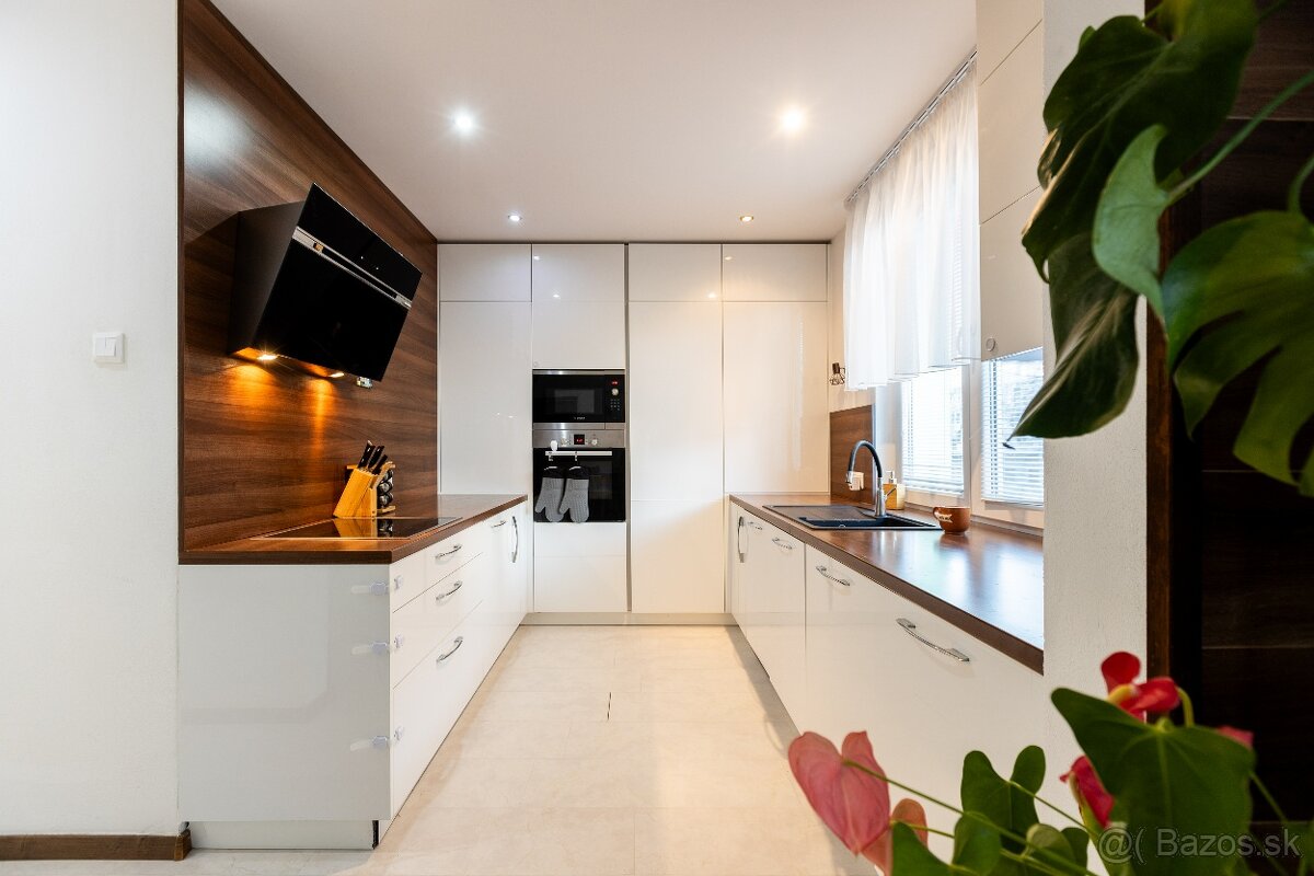 • K dispozícii je kompletne vybavená nová moderná kuchyňa s prepojením na priestrannú obývačku s dizajnovou knižnicou