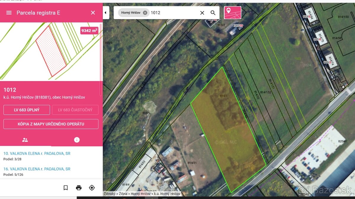 Predám spoluvlastnícky podiel parcely číslo 1012 v lokalite JPÚ Hôrky obec Horný Hričov. Podľa územného plánu je určený na IBV zástavbu. Parcela má celkovú rozlohu 9.342 m2 a predávaný spoluvlastnícky podiel parcely je 2.400 m2