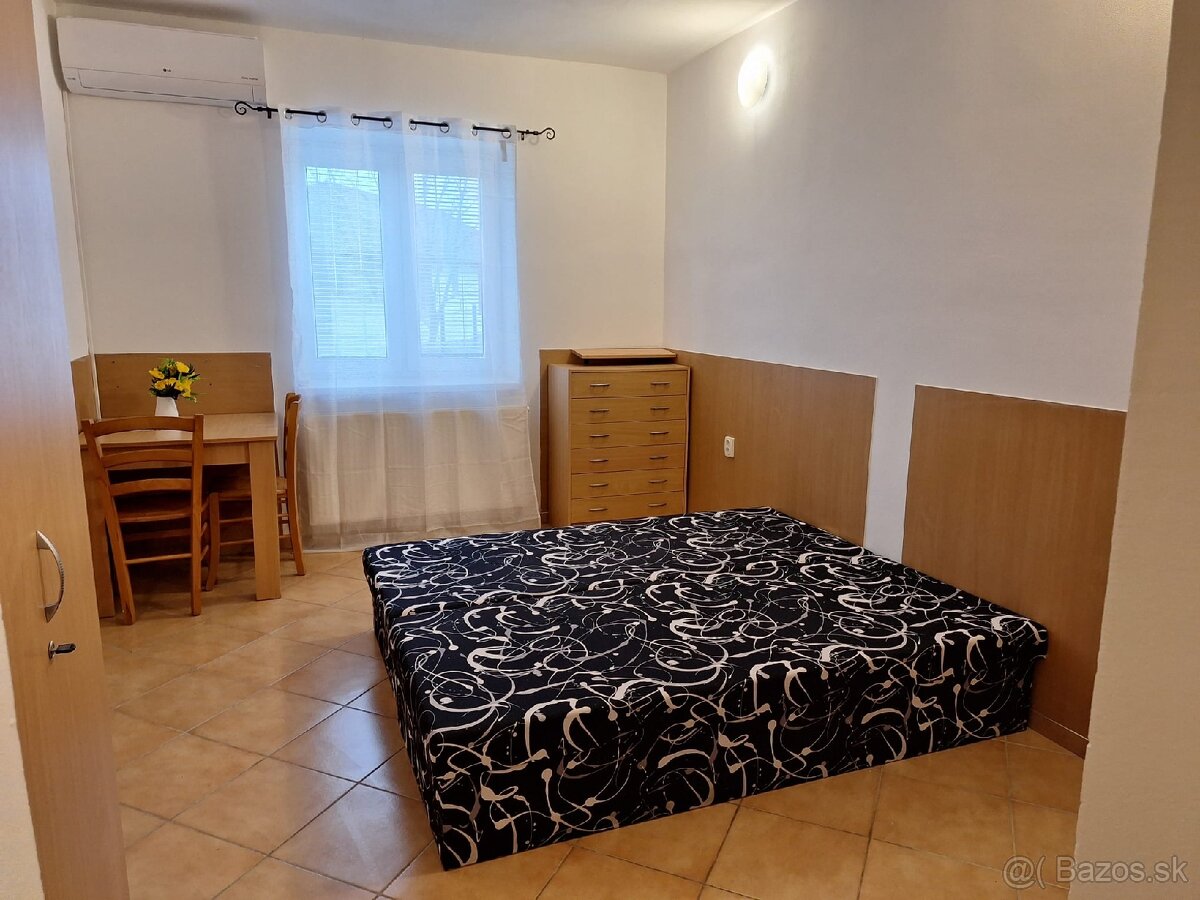Dám do podnájmu klimatizovanú garsónku 20m2 v obci Trnávka pri Šamoríne v prízemnom dome s vlastným parkovacím miestom na pozemku pod oknom, v slepej a tichej ulici. Je zariadená základným nábytkom a kuch.linkou a dá sa aj dozariadiť podľa požiadaviek, prípadne aj uvolniť ak máte vlastný nábytok. Nájomné sa platí vopred na mesiac 330 € , v cene je kúrenie, vodné, stočné a 200kw/h elektriny (ostatné doplatok podla zse).