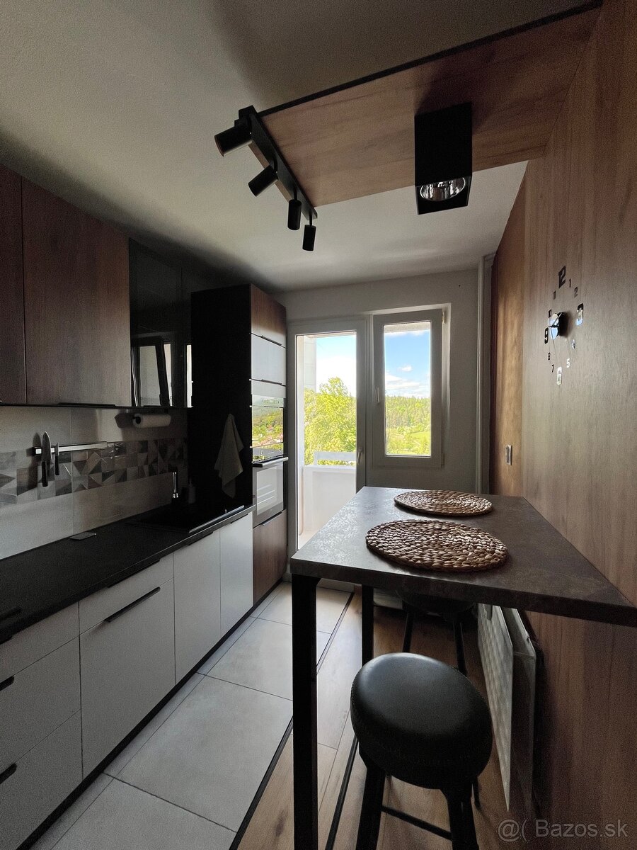 🏡 Ponúkam na prenájom moderný, kompletne zrekonštruovaný 2-izb. byt s balkónom v Žiline (Hájik - ul. Baničova). Byt je o výmere 50m2 + balkón. Byt sa nachádza na treťom poschodí z ôsmich, s výťahom. Byt má samostatnú kuchyňu s prístupom na balkón. Nábytok v byte je úplne nový, moderný a na mieru. Byt sa prenajíma zariadený. Komplet vymenená elektroinštalácia, kompletne nový nábtyok a spotrebiče (práčka, chladnička, indukčná varná doska, mikrovlnka, trúba). K dispozícii je aj malá pivničná kobka.