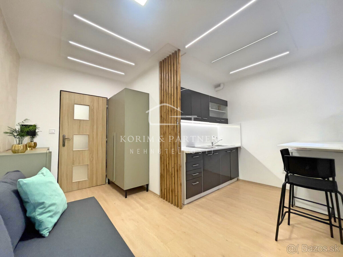 Na prenájom je pre Vás pripravená útulná garsónka o výmere 20 m², nachádzajúca sa na prízemí bytového domu. Byt prešiel kompletnou rekonštrukciou a je zariadený tak, aby poskytoval komfort jednotlivcovi alebo páru. Dispozične pozostáva zo vstupnej chodby, jednej obytnej izby spojenej s kuchyňou a priestrannej kúpeľne s vlastným bojlerom, sprchovým kútom a WC. Táto garsónka je ideálnou voľbou pre tých, ktorí hľadajú praktické, útulné a cenovo dostupné bývanie s dobrou dostupnosťou služieb. V blízkosti sa nachádza dostatok parkovacích miest.