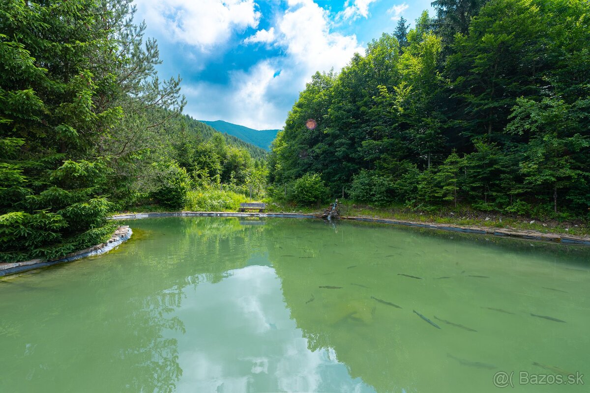 Predstavujeme vám exkluzívne iba u nás jedinečný rekreačný komplex v nádhernom horskom prostredí obce Fačkov, okres Žilina. Tento rozľahlý areál s celkovou výmerou 5.069 m² ponúka dve samostatné chaty, ideálne na investíciu, podnikanie či luxusné rodinné sídlo. Chaty sú situované na rozľahlom pozemku s vlastným ovocným sadom (120 stromov - jabloň, slivka, hruška, čerešňa) a súčasťou nehnuteľnosti je aj súkromné jazero s kapacitou pre 1 000 pstruhov.