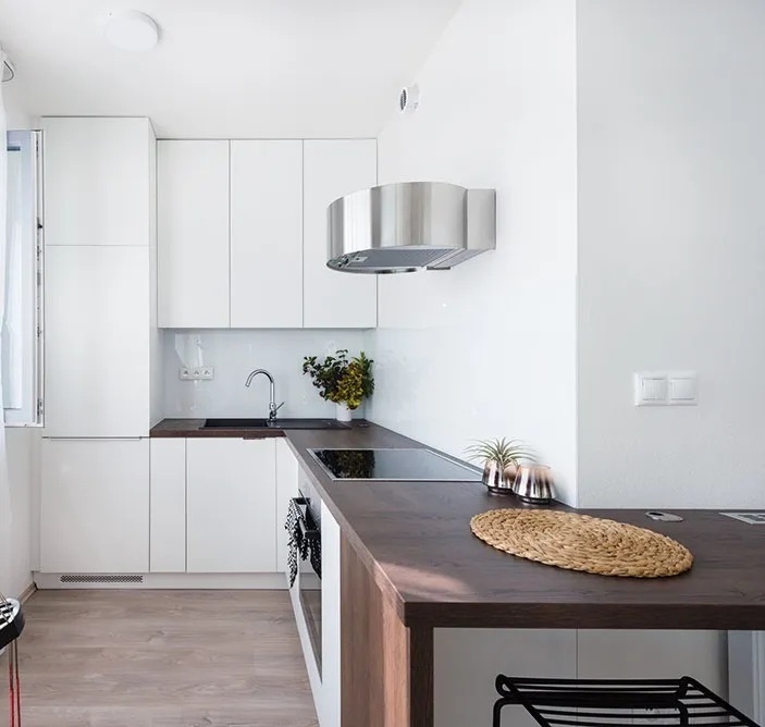 Vybavenie: rohová kuchynská linka so vstavanými spotrebičmi, barový stolík, kúpeľňa s vaňou a závesným WC, práčka so sušičkou, smart TV, bezpečnostné dvere