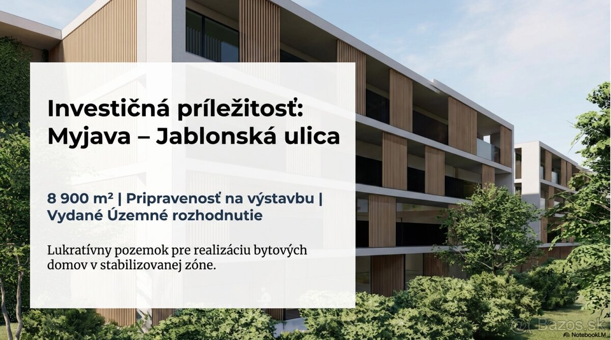 Stavebný pozemok 8900 m2 pre Developera - Myjava Jablonská