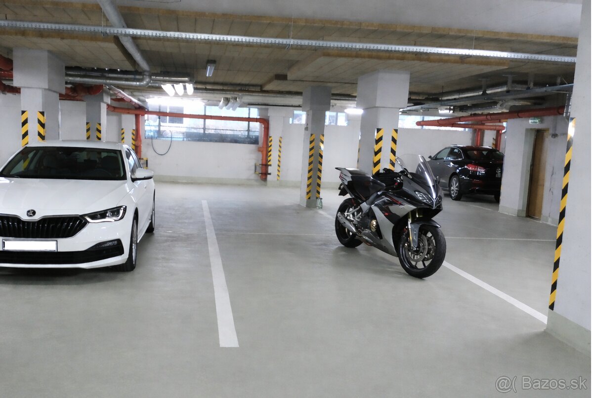 Prenajmem vnútorné garážové státie v novostavbe TAMMI 2 - Pri Hrubej lúke 15 (žlté balkóny) v Dúbravke. Výmera státia: 13 m2. Vstupná brána s výškou 2,1 m je na diaľkové ovládanie. Priestory sú suché, teplé, osvetlené. Výborná lokalita tesne vedľa OC Dúbrawa (Tesco), neďaleko konečnej zastávky Pri kríži. Blízke napojenie na diaľnicu a do Borov. Ideálna ponuka, v lokalite niet voľných parkovacích miest. Cena 75 euro mesačne.