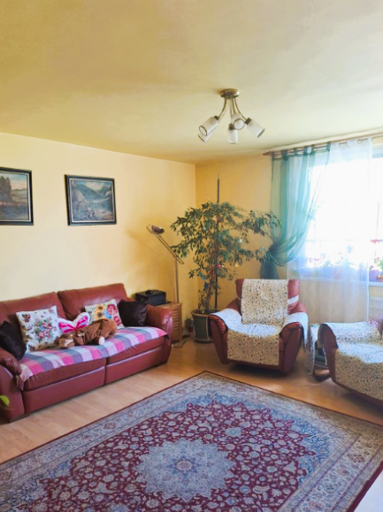 Byt o výmere 60 m2 + 3m2 balkón sa nachádza na 1. poschodí ( pod ním je ešte jeden byt ) z 3. bez výťahu. Patrí k nemu aj murovaná pivnica.