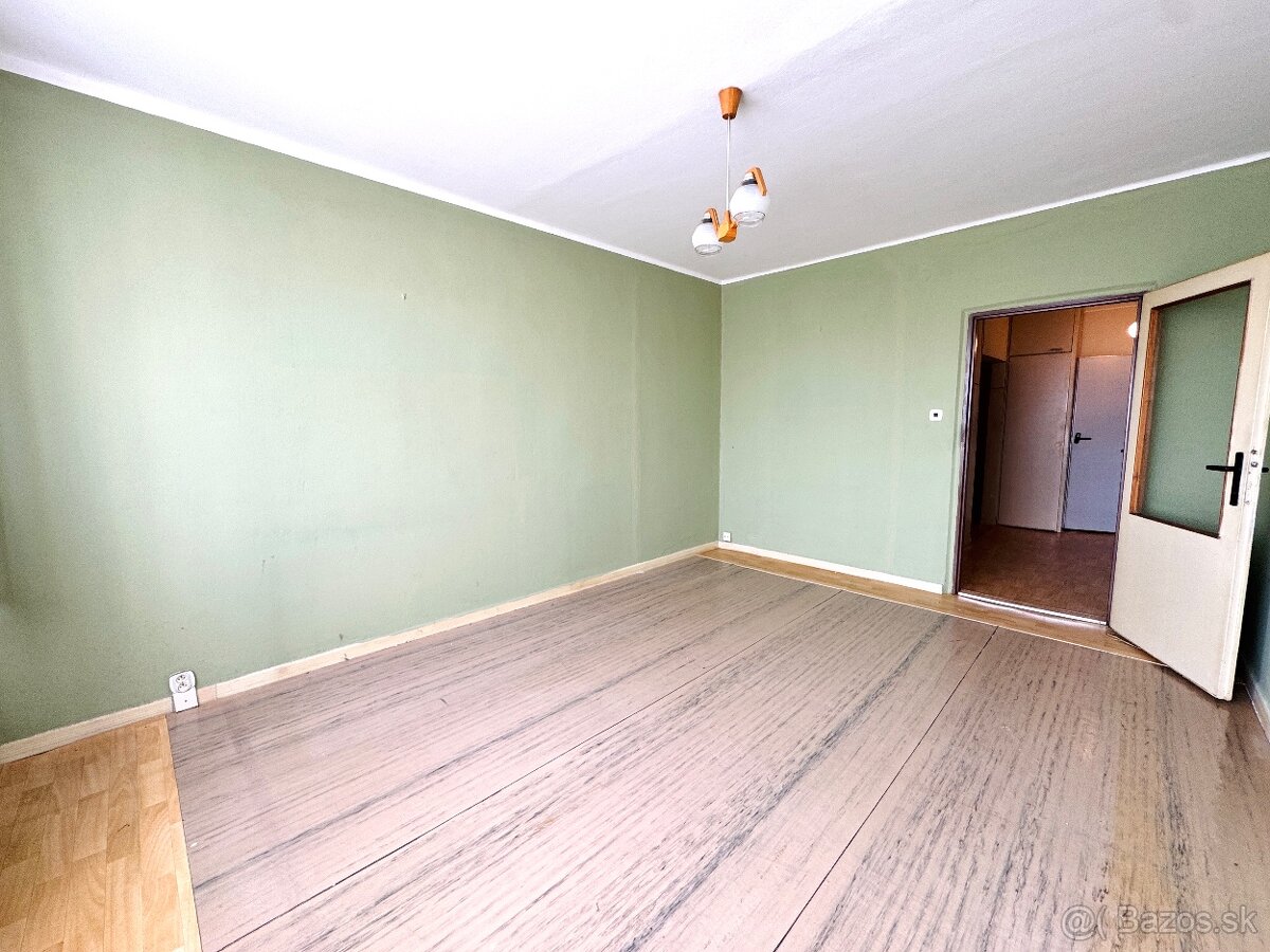 Byt je v pôvodnom stave, ideálny na rekonštrukciu podľa vlastných predstáv. Dispozícia pozostáva z priestrannej obývačky, spálne, kuchyne so špajzou, kúpeľne, samostatného WC. Z kuchyne je výstup na lodžiu a z izby na balkón. Izby sú nepriechodné.