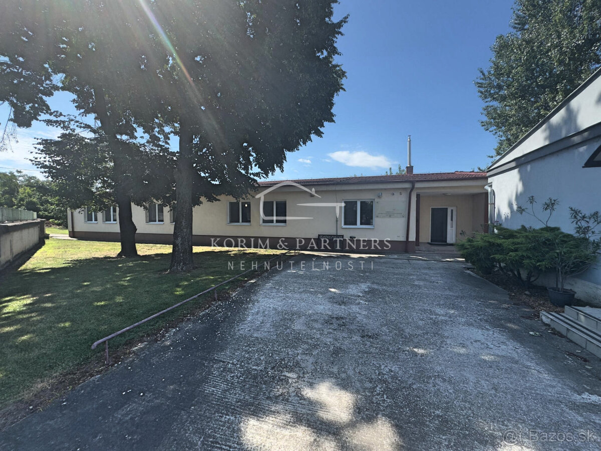Hľadáte podnikateľský objekt pre vlastné podnikanie, alebo ako investíciu na prenajímanie? Ako by Vám vyhovoval objekt, ktorý sa nachádza blízko centra mesta a zároveň v pokojnej časti? Výhodou je aj to, že pozemok s celkovou rozlohou 1294 m2 je oplotený a má 8 vlastných parkovacích miest. Dispozícia budovy s úžitkovou plochou 345 m2 je veľmi praktická. Po vstupe cez hlavné dvere sa ocitneme v chodbe, ktorá pokračuje ďalej smerom dozadu naprieč celou budovou a na jej konci sú dvere do jednej z miestností. Chodba je v strede, preto do každej miestnosti v budove vedie samostatný vchod, resp. dvere. Na začiatku sú soc. zariadenia, kuchynka, prezliekareň s technickou miestnosťou, sklady a oproti kancelárie. Vonku pri budove je samostatná garáž, ktoú je možné využiť len ako sklad, prípadne parkovanie jednostopových vozidiel.