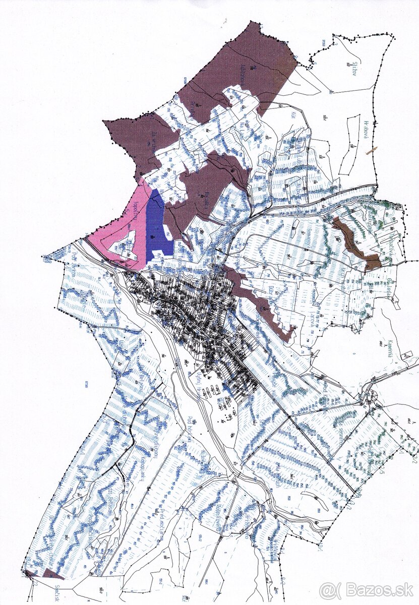 (viď. všetky vyfarbené parcelky na mape)