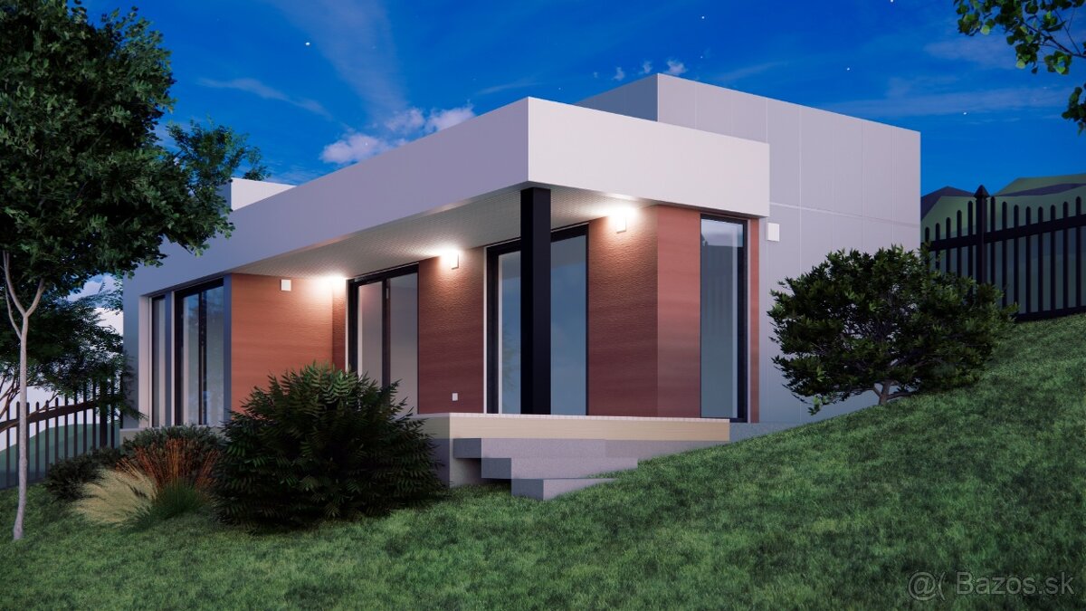 Modulárny dom, chata, kancelárske, obchodné priestory - TOP - [25.3. 2026]Nový, dvojmodulový dom s projektovou dokumentáciou v tvare – L,(7x3m + 6x3m) s rozlohou 39 m². Dom je zo zváranej oceľovej konštrukcii, zateplený sendvičovými PIR panelmi, z interiéru je povrchová úprava sadrokartón. Exteriér, kombinácia zateplenia so silikónovou omietkou, plechovým a dreveným obkl ...
