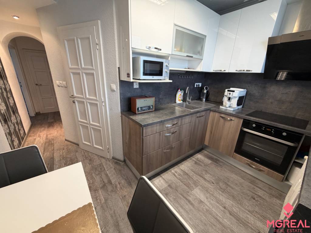 Ponúkame vám na predaj 3 izbový byt s tromi balkónmi v meste Topoľčany . Nachádza sa na ulici Streďanská , kúsok do centra mesta . Je na 13. poschodí z 13 poschodí . Má 77 m2 . Vznikol spojením garsonky a 2 izbového bytu a prešiel kompletnou rekonštrukciou cca 10 rokov späť . Má čiastočne menenú elektrinu , plastové okná , bezpečnostné dvere , stierky . Podlahy v izbách sú plávajúce . Nová kuchynská linka na mieru so vstavanými spotrebičmi , umývačka riadu , indukcia .Kúpeľňa je murované jadro s rohovou vaňou z mramoru ako i umývadlo z mramoru , wc jed oddelené . Predáva sa vrátane kompletného zariadenia okrem osobných vecí . Pivnica latková . Rezidenčné parkovanie . Cena 165 tis Eur