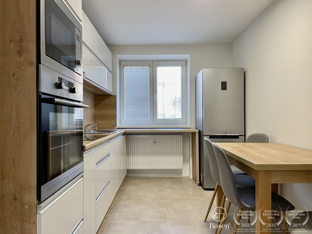 ZARIADENIE: Byt sa prenajíma plne zariadený tak, ako je na fotkách – k dispozícii je gauč, TV, konferenčný stolík, vstavaná skriňa, posteľ v spálni, práčka, kuchynská linka so spotrebičmi, chladnička a jedálenský stôl so stoličkami.