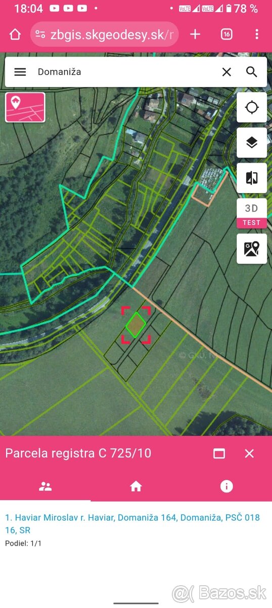 Predám stavebný pozemok. Súčasťou kúpnou predajnej zmluvy bude aj kopia potvrdenia že sa jedná o stavebný pozemok a to aj z toho dôvodu aby mohol byť zapísaný aj podiel na spoločnej ceste. Pozemok je vhodný na výstavbu rodinného domu ktorý nebude závislý na cudzích zdrojoch ale vhodný je aj pre záhradkára, chatára na výstavbu chaty. Cena pozemku je veľmi výhodná oproti cene za ktorú sa predávajú v obci Domaniža pozemky zhruba len jednotretiova a tak nízka cena je len z dôvodu že sú neni inžinierske siete priamo na pozemkoch aj keď su v blízkosti, to len na vysvetlenie a na 3/8 pozemkoch ktoré sú ešte voľné a z ktorých si ešte môžete zatiaľ vybrať nie je samozrejme žiadna ťarcha čiže ich môžete okamžite užívať.Volne pozemky sú teda ešte 3 z 8 pozemkov ako som už uviedla lebo ostatné sú už predané a 1 je zalohovo zajedany.Cenu môžete navrhnúť aj vy. Teda pri rýchlom jednaní je cena možná aj dohodou.